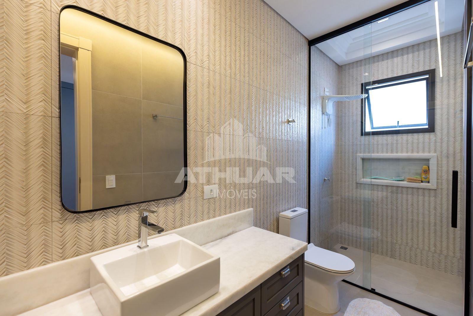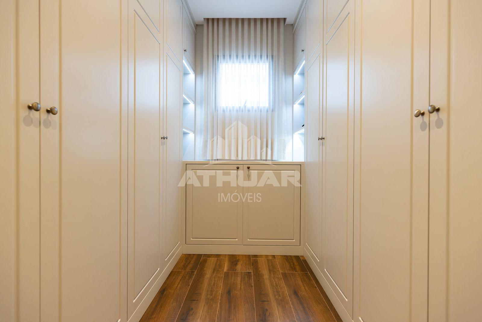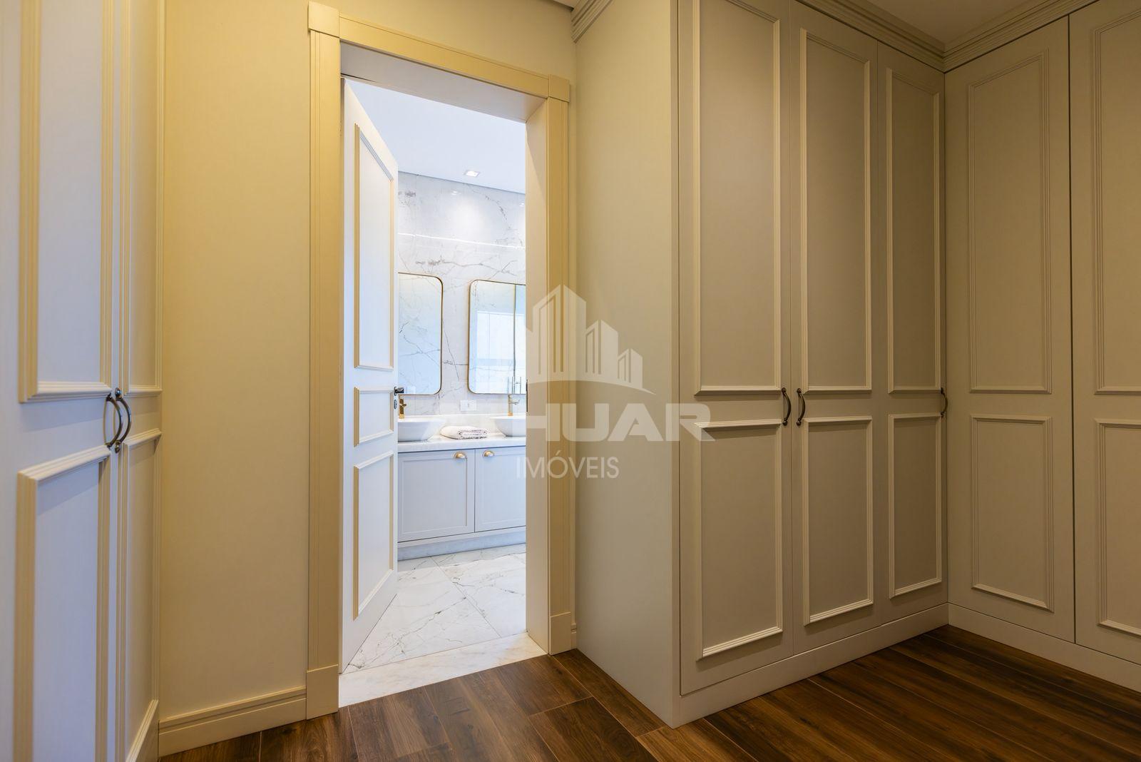 * Três suítes todas com closet e sacadas amplas, sendo duas com vista para a natureza;